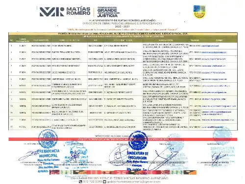 Padrón de Contratistas de Obra Pública. Ejercicio Fiscal 2025.